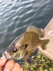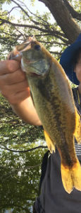 ブルーギルと一緒に15センチくらいのバスがふらふら回遊してます♪