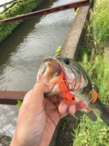 最近はまり中のノリーズ パドチューのスプリットリグで土管やら橋下を狙っていくとグングンとアタリ。