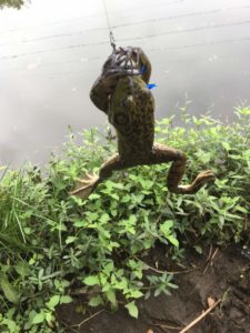時間も無くなってきたので、簡単に釣れるのだけ釣って帰ろうとまたもイモグラブをアシ際に落としてみると。