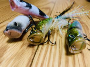 リザーバーや野池であれば虫パターンとして、バスのベイトとポップXのアクションがマッチします。