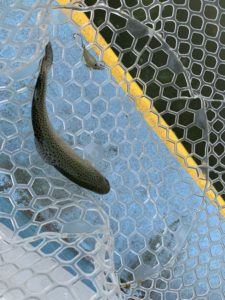 スプーンで何とか釣りあげてる間も隣のおじさまはバッコバコ釣ってます。